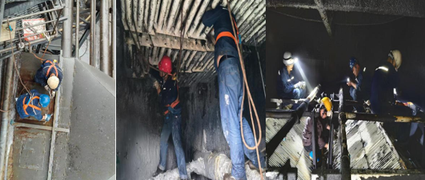 首輪排查聚焦公輔系統(tǒng)電纜橋架。電氣人員發(fā)現(xiàn)電纜與橋架金屬棱角存在外力磨損風(fēng)險(xiǎn),立即在多處易磨損點(diǎn)加裝絕緣阻燃膠皮,實(shí)現(xiàn)“以柔克剛”,杜絕短路及火災(zāi)隱患。隨后,針對(duì)球團(tuán)GGH室外變頻器柜散熱不良問題,技術(shù)人員加裝一臺(tái)大功率軸流風(fēng)機(jī),強(qiáng)制排熱,柜內(nèi)溫度由58 ℃降至43 ℃,保障變頻器長(zhǎng)周期穩(wěn)定運(yùn)行。